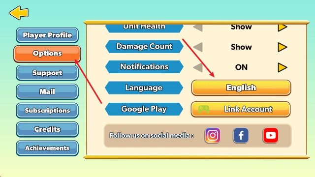 2、接着选择options,向下滑动找到language选项。