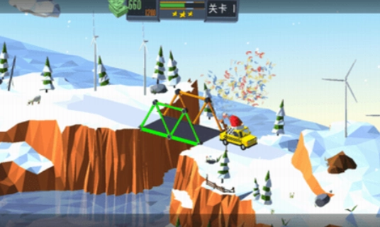 1、玩家在游戏里的自由度很高,可以任意、自由的建造各种各样的桥梁。