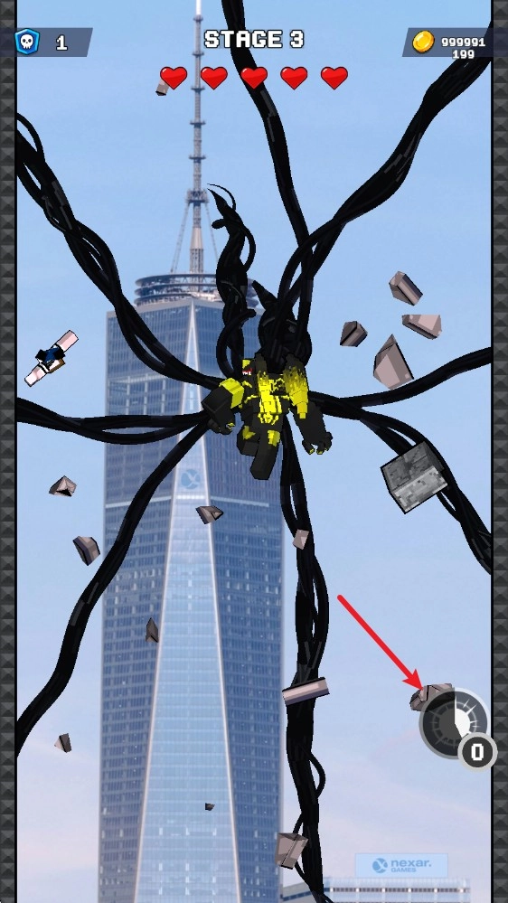 1、进入游戏后,拖动屏幕会出现红色箭头,借助它可以操控毒液的跳跃方向。