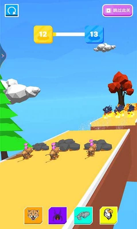3、根据不同的地形选择使用猫咪和老鼠或更多其他小动物来通过关卡完成挑战。