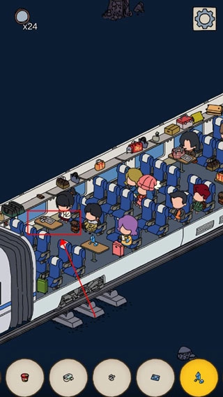 点击时光水晶后,我们就来到动车车厢,可以看到车厢后排白头发乘客前面放着泡面。