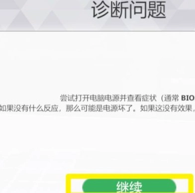 3、第三步,把电脑拿到工作台上之后,就会显示需要诊断问题,然后点击继续;