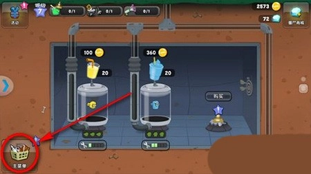 点击【汽车餐厅】,回到汽车餐厅页面后,向下滑动界面,接着点击【主菜单】。
