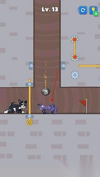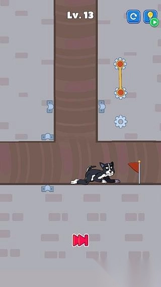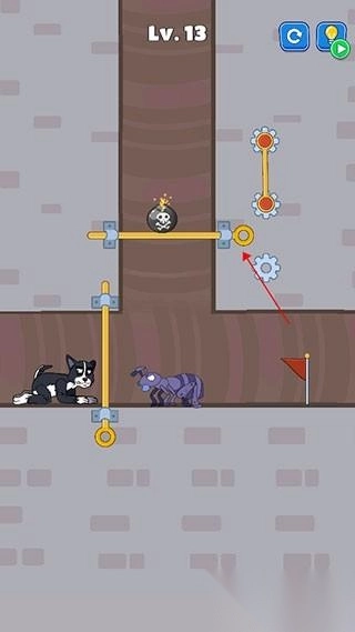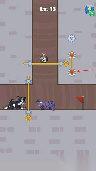 1、后打开进入游戏,我们以13关为例,首先先把这个拉杆往上移动