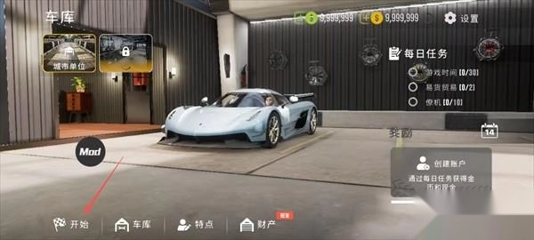 2、购买车辆后,点击【开始】按钮选择游戏模式。