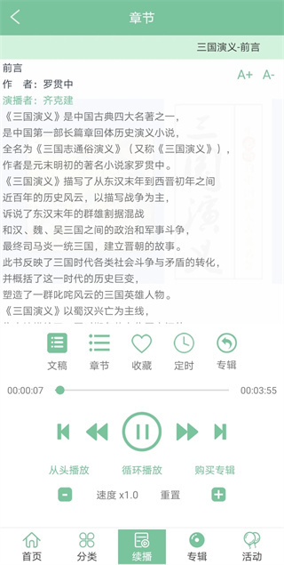拥有文学名著、有声小说、曲艺戏曲、名家评书、儿童文学、外语学习、时事新闻、搞笑段子、健康养生、广播剧、职业技能等十几个大类海量高清有声阅读资源,每天都有新的资源更新发布。