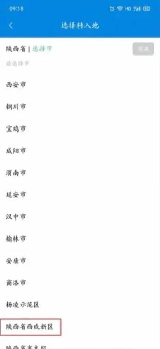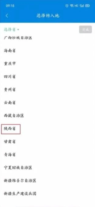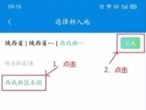 准确选择转入地,如陕西省-西咸新区-西咸新区本级,确保省、市、县选择正确。