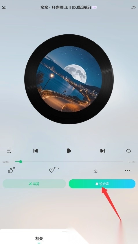 3、进入播放页面后,点击右下角的设置按钮,根据指引操作,就能把选中的音频设置为来电铃声或通知铃声。