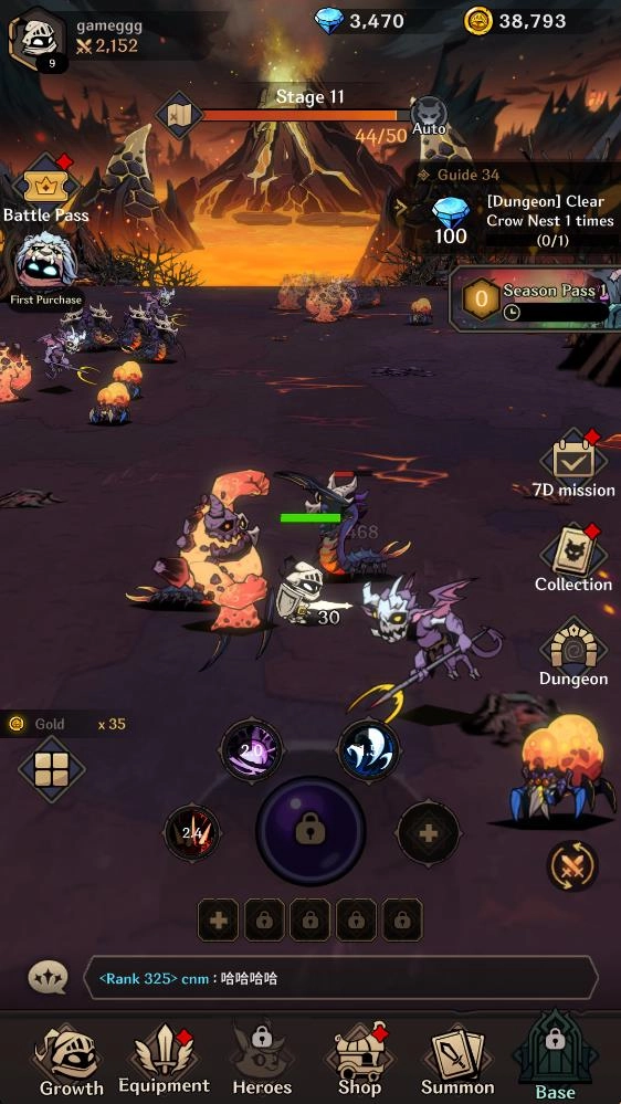 1、进入游戏后滑动屏幕可以控制角色移动,角色会自动攻击附近的怪物。