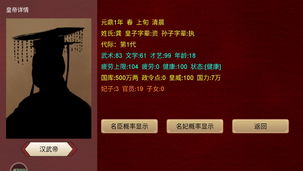 3、在执政期间,要时刻注意自己的各项属性,均衡发展