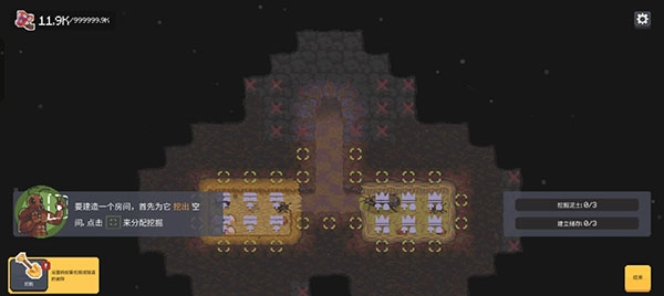 4、然后我们就可以来挖掘附近的土块扩充自己的巢穴了。