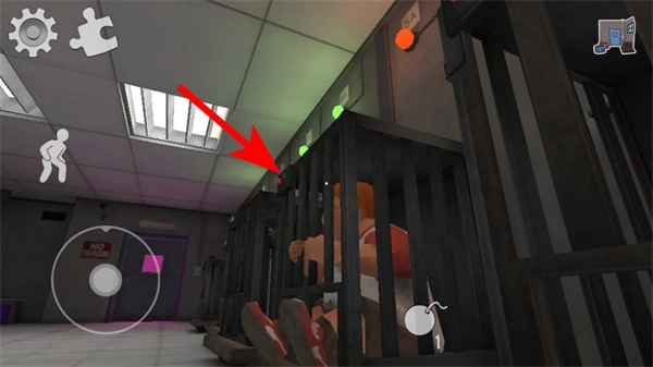1、操控角色移动到目标牢笼附近,观察牢笼内的角色状态,开启场景NPC互动流程。