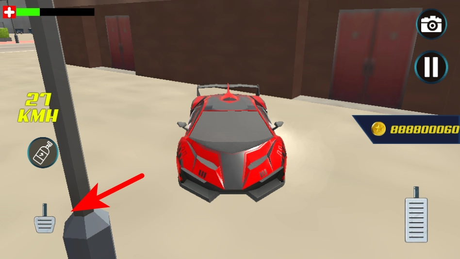 4、通过左侧的减速按钮踏板图标控制赛车减速,调整行驶节奏,完成赛道驾驶挑战。
