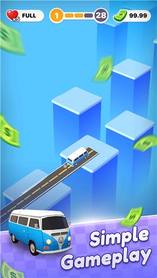 1.进入游戏,将从一辆车开始进行冒险,不断建造桥梁来抵达终点。