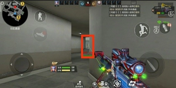 保卫者狙击手的位置,在这可以看到中路方向,警家方向,还可以看到B斜和吧台出口,是个绝佳的狙击点