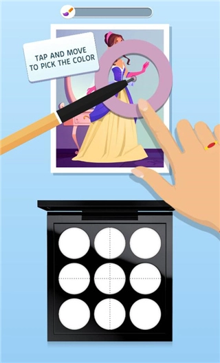 2、玩家在完成足够次数的颜色选择后,需要把对应的颜色填充到眼影盘里。