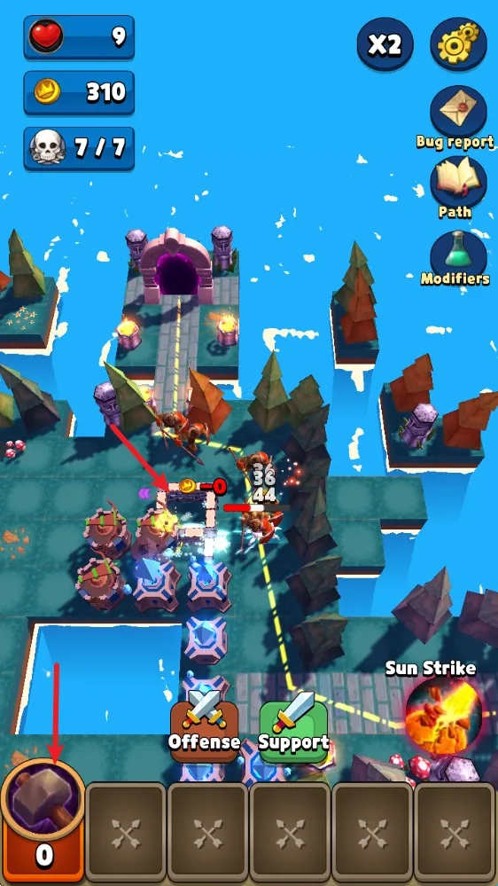 4. 玩法持续丰富拓展:可在敌人行进路线布设防御塔,通过修建防御墙改变其移动路径;闯关过程中解锁更多防御塔种类,借助符文天赋提升战斗能力,还能释放专属技能,为玩家带来多元的游戏体验。