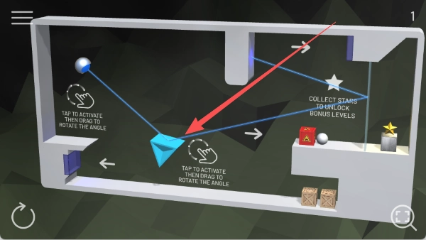 A: 我们的目标是借助对关卡内道具的合理布局,使激光在经过反射与分裂后,最终成功点亮目标传感器,从而完成光路传输的任务。