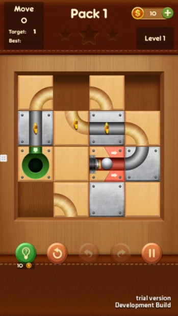 滑球拼图是一款休闲益智类游戏,它的玩法十分独特,巧妙融合了华容道与拼图构造的核心机制。在游戏过程中,你需要在有限的空间里滑动各个滑块,通过调整它们的位置来将滑块中的通道连接成一条完整的路径,这样小球才能顺着通道顺利抵达终点的小洞。此外,关卡中还加入了收集星星的元素,这不仅提升了游戏的挑战性,也让整体的趣味性更加丰富。
