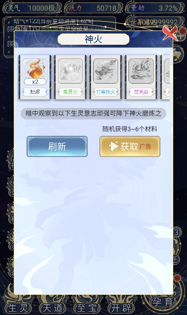 6、不管你是挂机等待道韵,还是手动操作等道韵,通过看广告刷“域外战场”来获取人口,这个步骤都是必须要做的。