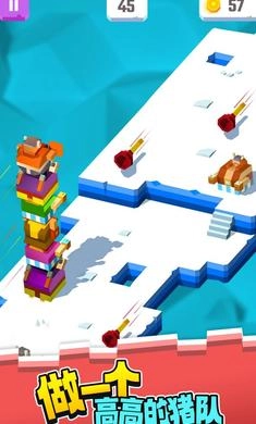 1、玩家需要通过操作屏幕上的方块,让小猪顺利堆叠起来;