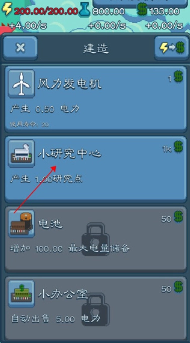 3、不久你就可以建造办公室,办公室可自动售卖电力并且可研究出风力发电机升级技术。