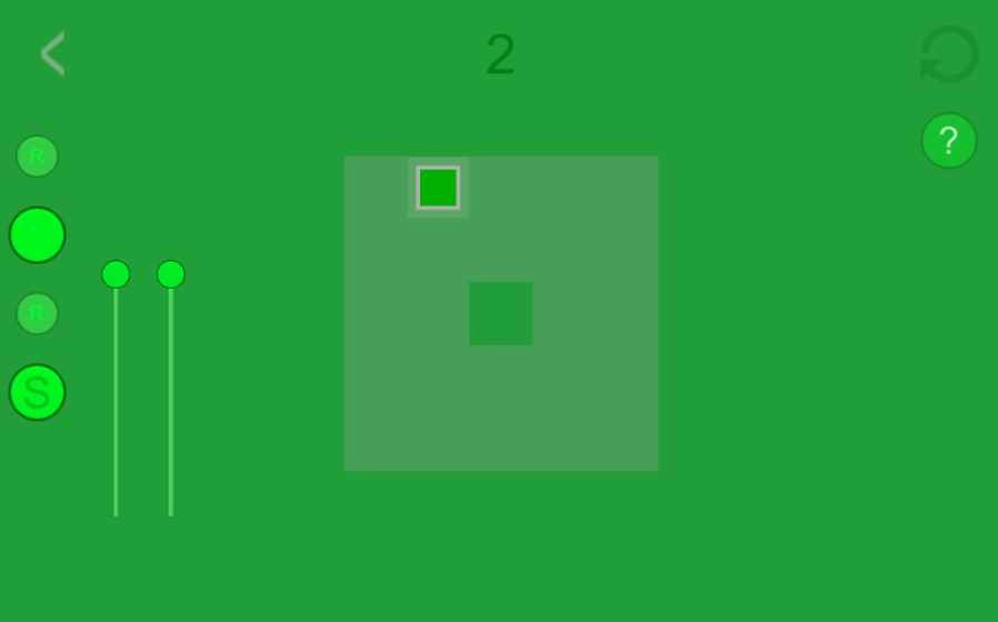 1、用手指在屏幕上滑动来操控动感方块移动,目标是让整个背景都变成同一种绿色。