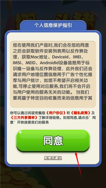 1、用户打开游戏后同意相关的隐私协议
