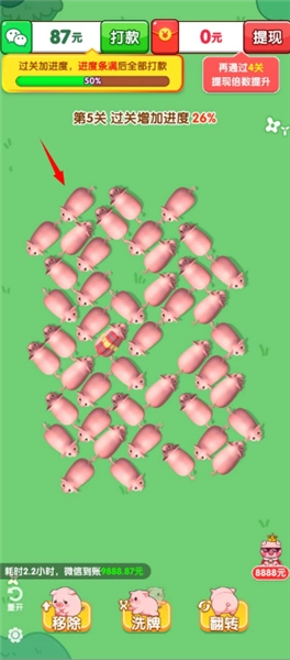 《猪事大吉赚钱游戏》是一款休闲解谜类的赚钱游戏。游戏关卡中分布着多只朝向各异的小猪,点击小猪后,它会朝着头部所指的方向移动,若前方没有任何阻挡,小猪就能成功离场。当所有小猪都被清空后,即可顺利通关并获得红包奖励。随着游戏进程推进到后期,关卡的难度会逐渐提升——小猪的数量会越来越多,排列方式也会愈发复杂。不过,要是遇到难以解决的难题,玩家可以通过使用提示功能或重置关卡来继续挑战。此外,完成每日登录、连续签到、通关等任务都能领取红包,而连续通关还有机会触发奖励翻倍的福利。