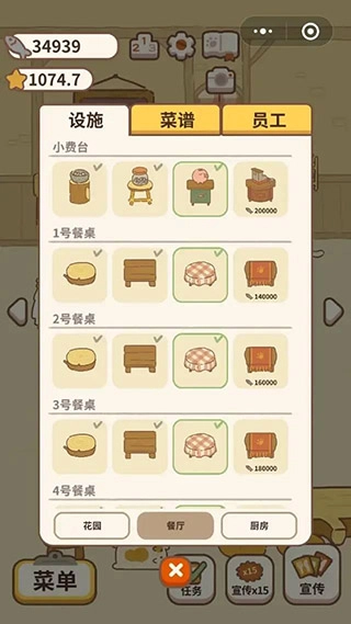 3、玩家可以在游戏中自由进行家具购买,装扮餐厅