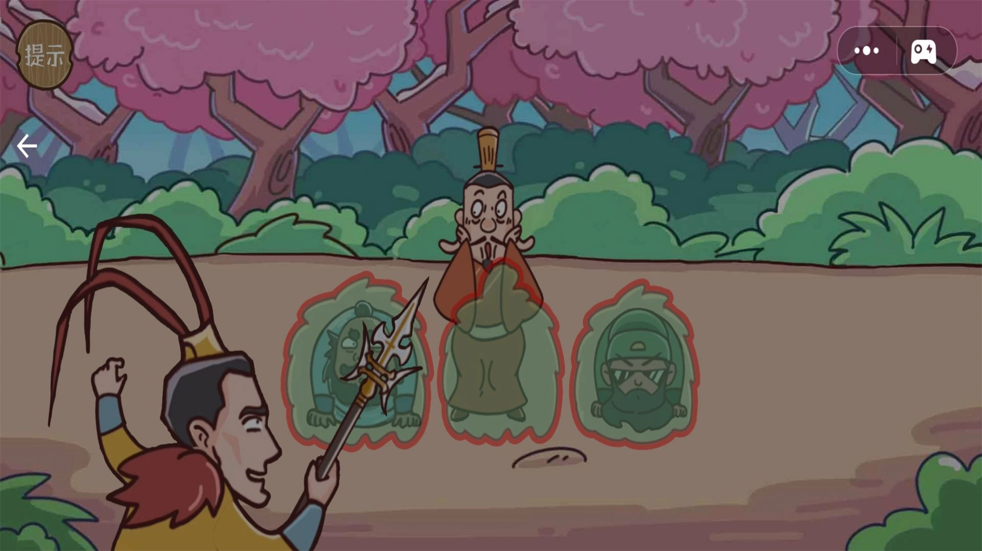 2、让刘关张三兄弟藏在草丛里,别被吕布发现,这样就能顺利通关拿到胜利奖励。
