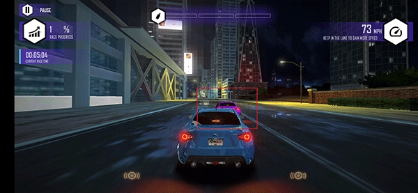 2、进入游戏后,可通过点击屏幕左右两侧来操控汽车的行驶方向,向上滑动屏幕则能释放氮气。