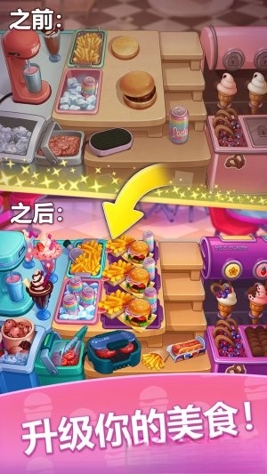 3.厨房内的各类设施以及辅助性道具支持升级与搭配组合,以此提高操作效率和游戏得分,使玩家能够体验到角色成长与策略规划带来的双重乐趣。