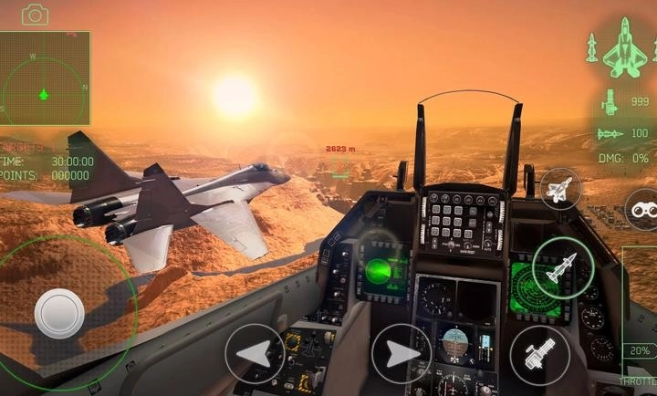 3、视听沉浸感表现极为优异,不仅运用了高标准的3D画面渲染技术,还格外重视音效的真实性,从引擎的轰鸣、导弹发射的呼啸直至击中目标的爆炸,再搭配动态天气与逼真座舱,一同构建出身临其境的空战氛围。