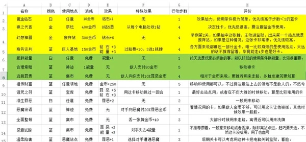 (游戏本身分了卡牌颜色,图中黄色绿色是我喜欢用的卡)