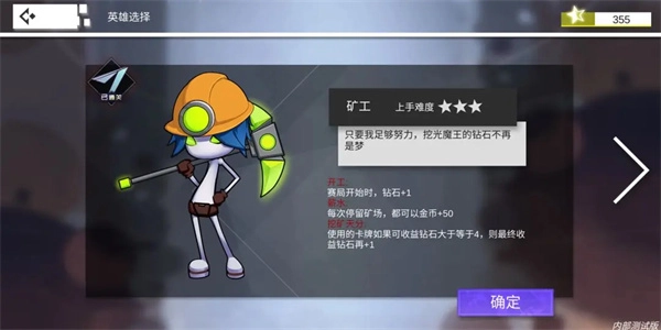 矿工:开局会赠送1颗钻石,当卡牌的钻石收益大于或等于4时,最终收益会额外增加1。通常情况下,用矿工打完一局就能解锁巫师了。矿工的优势很直观,核心就在于钻石收益。(另外还有金币加50的效果,不过触发后带来的收益不算高。不过矿工的起始位置多数时候都比较理想,比如在第三关时,距离祭坛很近,这样就能获得使用金卡的优势。)