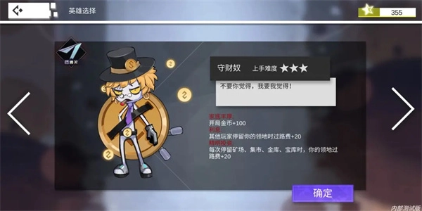 角色优势:擅长对决、偷取金币,且出狱速度快。可以主动发起对决并故意输掉,借此抢夺对手金币后迅速撤离;由于自身出狱快,完全无需担心坐牢问题,反而能借此机会从对手那里掠夺大量金币。核心站点是魔窟与恶魔点,建议多保留这两个站点的卡牌。另外,通过建筑偷钱的收益较低,仅在20%-40%之间,远不如在金库停留一次获得120金币来得实在。在未来的联机模式中,该角色定位为辅助型,主要具备打压对手的能力,自身强度并不突出。