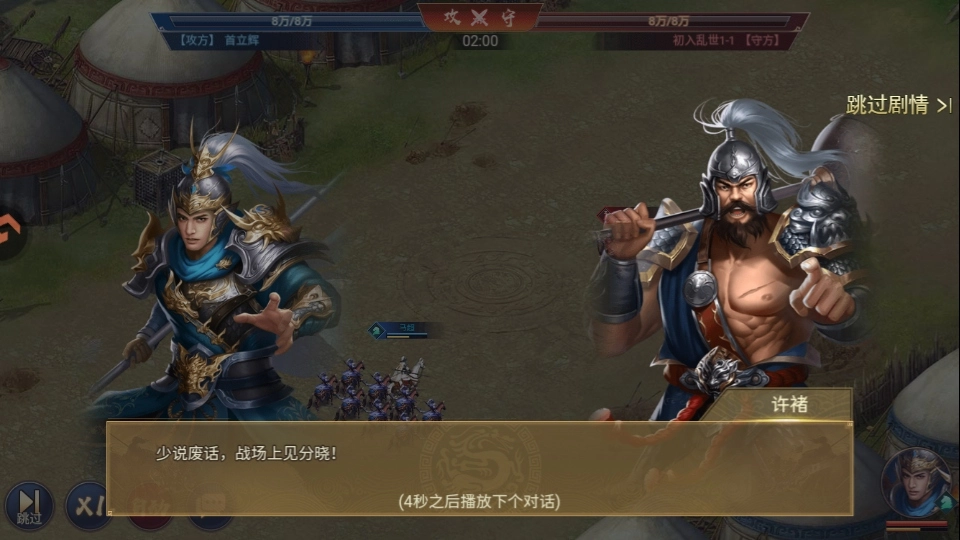 4.进入战斗,点击对话了解双方武将信息。