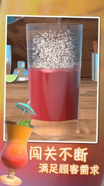 在这款满是创意和趣味的调酒模拟游戏里,你会成为酒吧的灵魂角色,亲手调制各种各样的特色饮品。从经典鸡尾酒到原创配方,每一杯都得精准掌控材料比例和调制技巧。游戏运用直观的操作方法,只要轻触屏幕就能完成倒酒、摇晃、装饰等动作,真实再现调酒师的工作场景。随着关卡的深入,你会碰到口味挑剔的顾客,解锁珍稀的酒水原料,还能布置专属的个性酒吧。画面色彩鲜亮,音效逼真,让人好像身处热闹的午夜酒馆。喜欢动手创作的朋友,现在就可以感受这份指尖上的调酒艺术。