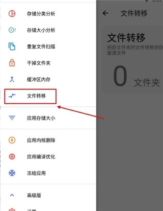 2、往下拉会看到转移文件,点击它;