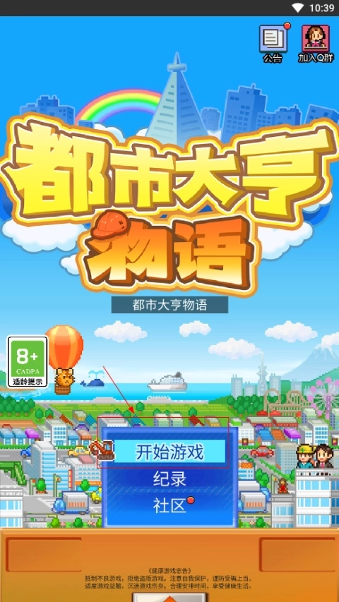 1、打开都市大亨物语正版,登录账号后点击“开始游戏”进入游戏世界。