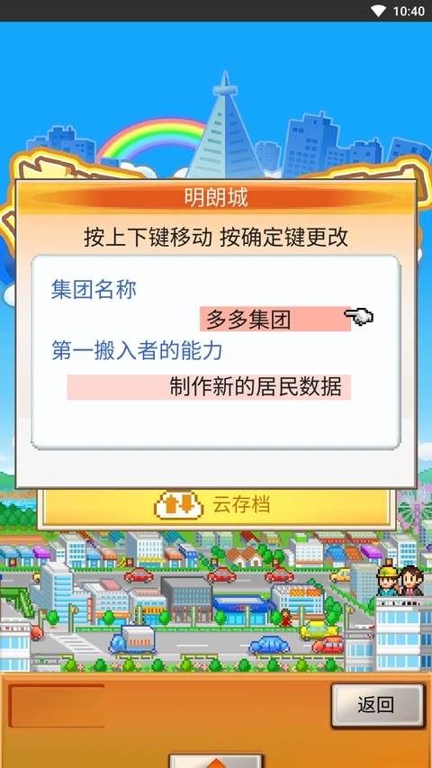 4、以明朗城为例,输入我们的集团名称,开启自己的商业帝国之旅。