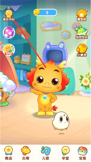 1、点击左上角的【家长中心】选项,进入家长专属的管理页面。