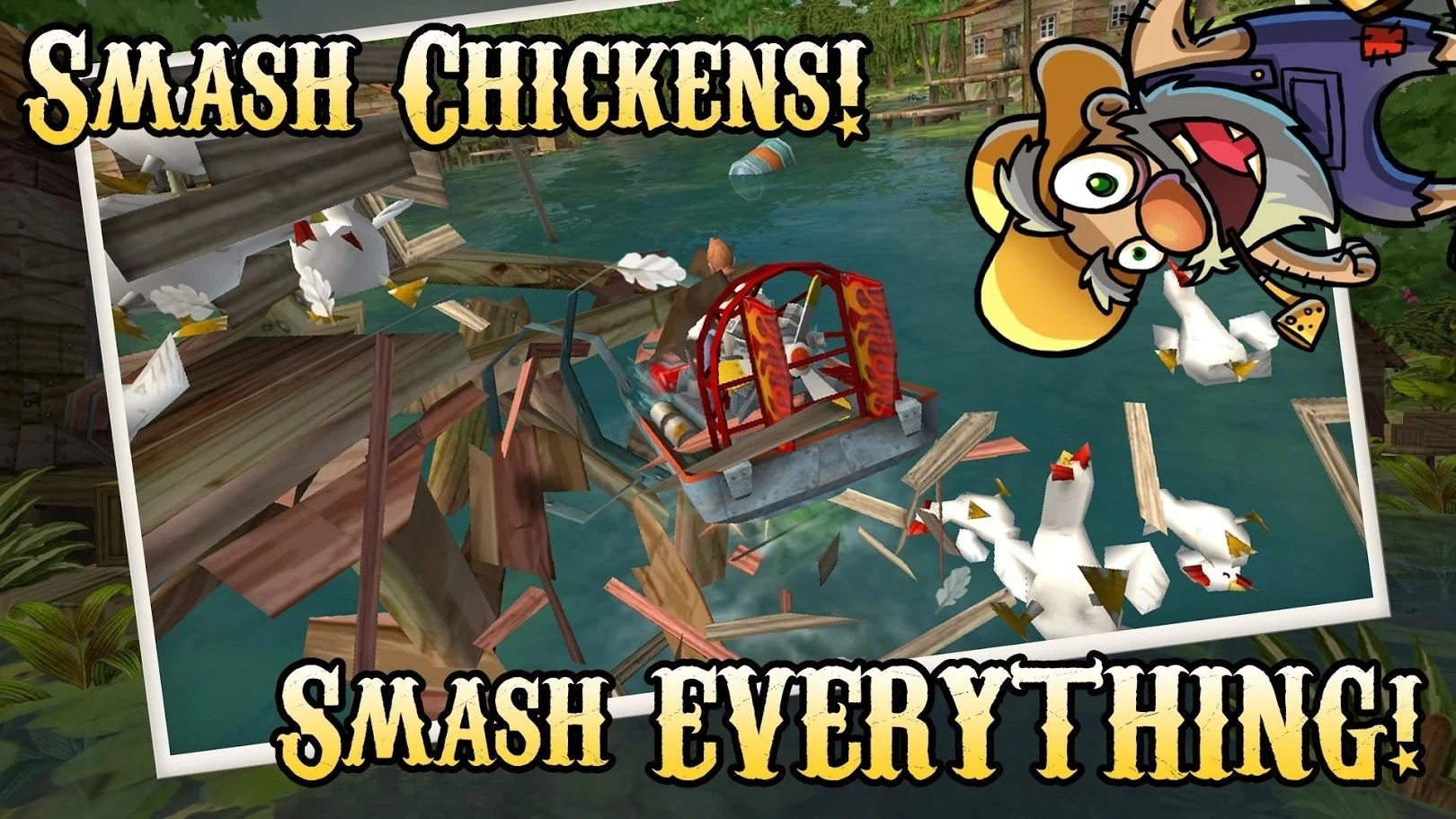 2、-完全可破坏的自然环境:你能够撞碎港口上堆叠的汽油桶,拆掉窝棚与小房子,甚至还可以撞飞小鸡和撞坏平底船;