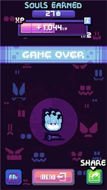 3、完成一个阶段后,玩家可以从一组随机的糖果和诅咒中进行选择,这些糖果和诅咒将为该游戏的其余部分提供永久的权力奖励。你是否会恢复所有希望在不合时宜的死亡之前持续更久的心?或者你会为最终的力量牺牲防御?这是你的选择!