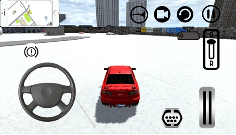 2、界面右上角的一排按钮依次为喇叭、视角、重来、暂停/菜单;第二排是后视镜与档位;最下方则分布着方向盘、刹车和油门。