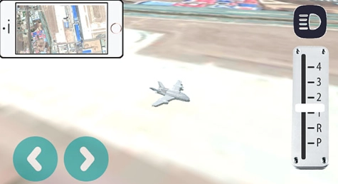 切换至飞行模式后,推动档位按钮控制起飞,左侧地图辅助导航。