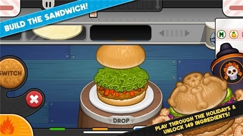 1、动感纷呈的美式漫画卡通风格呈现,门类齐全的汉堡包制作攻击任你自由使用;