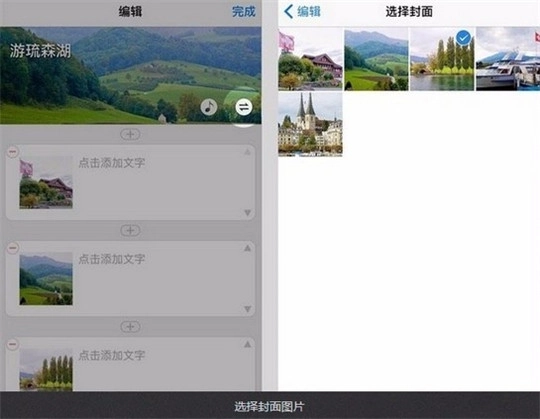 5、点选照片以后,点击“完成”按扭,然后选择“点击设置标题”按扭。