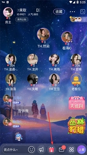 1、在直播间点击下方的礼盒按钮